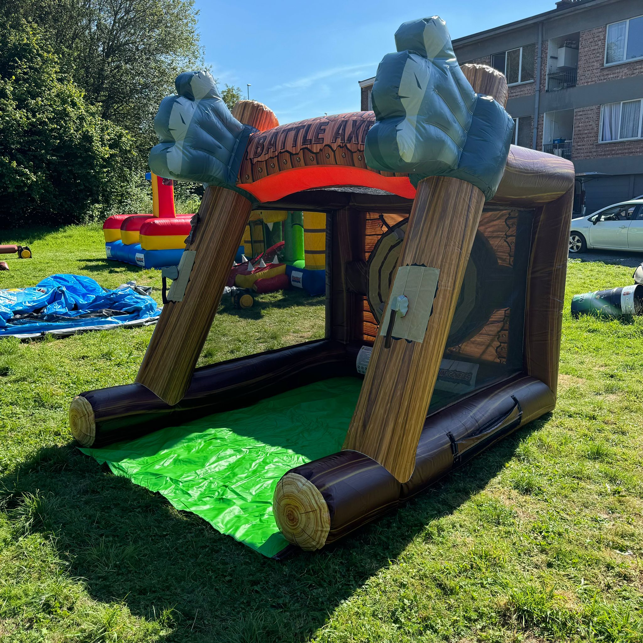 Bereid je voor op een unieke en spannende speelervaring met onze opblaasbare speelstructuur "Bijlwerpen". Dit spel van vaardigheid en precisie zal deelnemers boeien en een sfeer van vriendschappelijke competitie creëren op je evenementen.