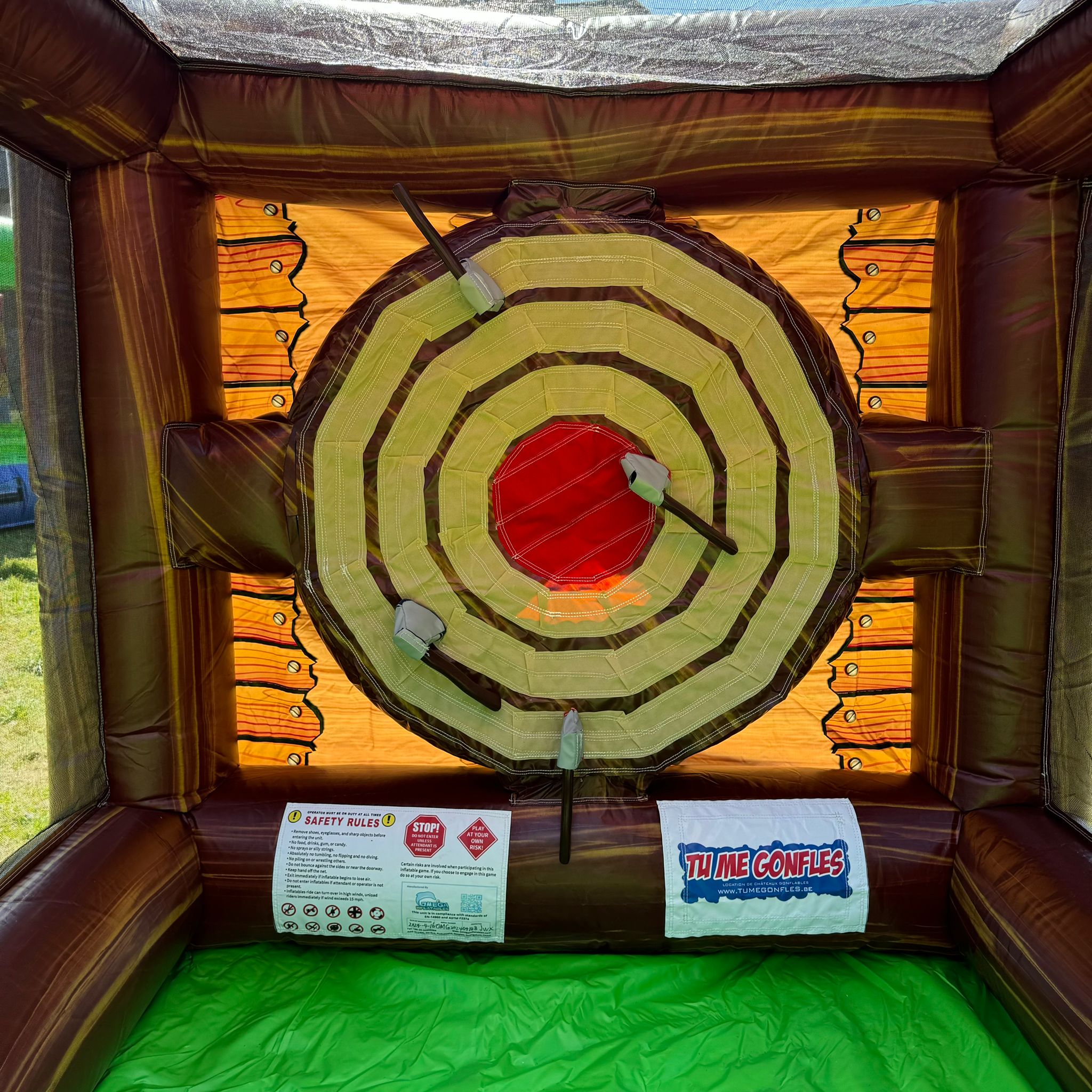 De Axe Throwing Inflatable is de ideale attractie voor verjaardagsfeestjes, schoolevenementen of familiereünies en biedt kinderen en volwassenen een leuke en veilige omgeving.